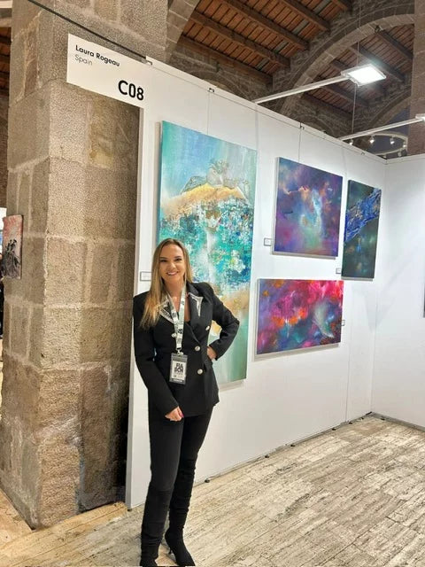 Laura Rogeau est une jeune artiste dont la sensibilité et les créations qui en résultent ne laisseront personne indifférent. Son profil « hors cadre » étant difficilement compatible avec la rigueur du système scolaire tel que nous le connaissons, c’est vers le monde artistique que Laura se tourne dès le plus jeune âge pour se ressourcer et se développer. Elle commence par la danse, une pratique lui permettant de s’épanouir et de s’exprimer comme elle l’entend. C’est ensuite en 2018, qu’elle commence à prendre des cours de peinture. A travers ses créations elle s’exprime et partage ses émotions, ses ressentis, son expérience. Son travail profondément poétique nous plonge dans des univers où cohabitent sans cesse fragilité et force, douceur et colère.